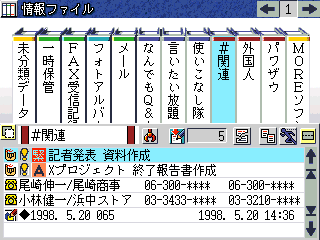 情報ファイル 自分の好きな分類方法で情報ファイルを作ることができます。 |