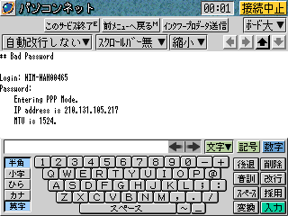 接続できてもブラウザやメールが利用できるわけではないので、あくまでも「接続」するまでの処理になりますが、どのような文字列がプロバイダから送信され、どのように入力すると接続できるのかを確認する事ができます。