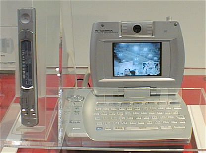 W-CDMA対応端末 昨年はモックアップだった"SH"の型番を持つメール端末も、今年は動画が表示されていました。(裏側に大きな基盤があうのかも知れないけれど) 未来のコミパルだと思っていたのですが、未来のザウルスなのかも。